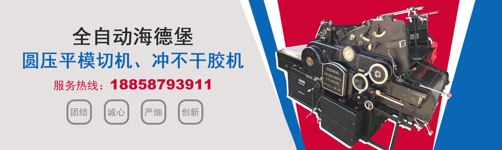 瑞安市恒柯機械廠(www.wzhkjx_com.xindaim.cn)是國內專業制造銷售全自動模切機,全自動燙金機,圓壓平模切機,圓壓平燙金機,滾筒燙金機,沖不干膠機,海德堡凸印機.銷售的產品系列規格齊全,產品具有速度快,壓力均勻,套印準確等特點。